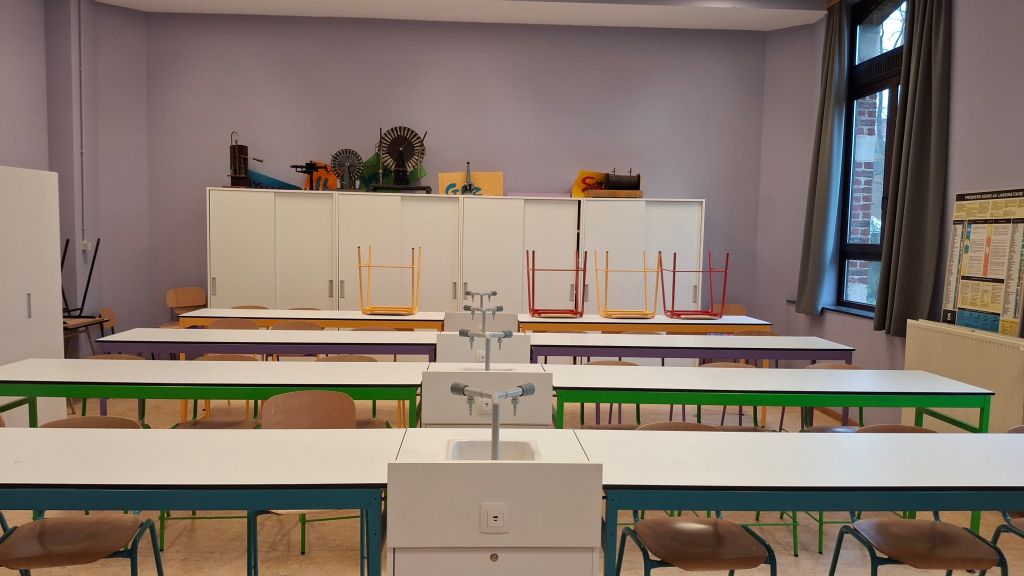 Les classes sont assez neutres avec des couleurs basiques. Quant à l’ambiance des locaux… c’est assez macabre, surtout en physique.